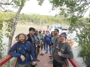 This 03 Day December 05-07, 2025 Sundarban Trip was Led by Mr. Ikbal H Babu. The Team started from Dhaka on Thursday evening and arrived Khulna at around 12:30AM. The Ship started promptly, picked up the Forester Guard and cruised towards Finfoot Zone of Sundarban via Dhaki River. This Trip was targeted to capture primarily the Masked Finfoot, Brown Wood Owl and Mangrove Whistler. We had a Dutch Group that’d visit this area on later days so this Trip worked as a recce trip for that one.